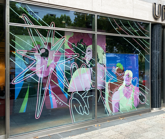 I was ask to transforms Urban Outfitters Kurfürstendamm store window display to celebrate the LGBTQIA+ community. I have created posters portraying love and hand painted joyful pattern on the windows. Additionally to this project we have made a post box to share the coming out stories of people that were open to share it with us. It was such an honour to create such a positive peace on the rout of Berlin Pride.